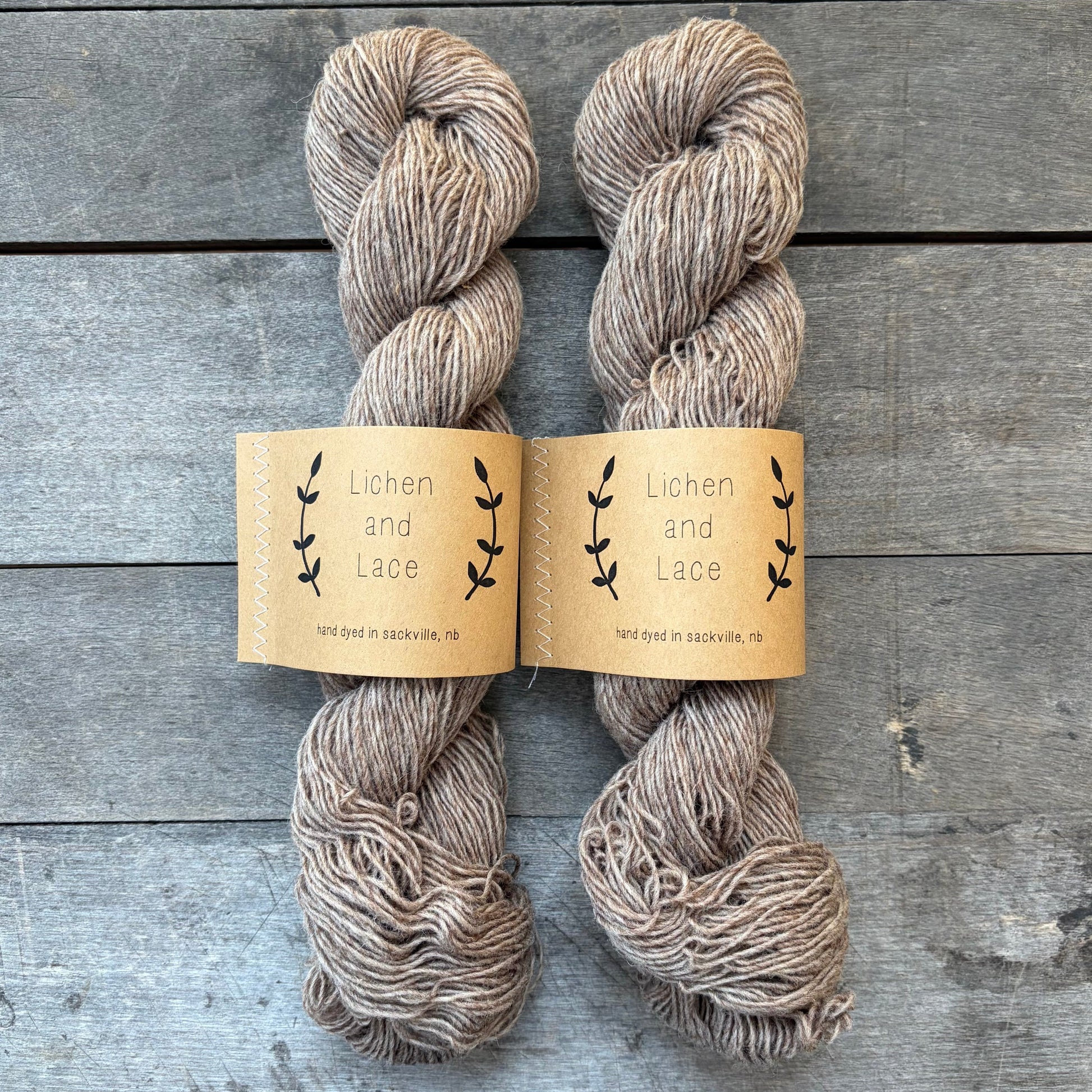 A minimally processed (non-superwash), rustic sport weight yarn made with Canadian wool, spun in New Brunswick at Canada's oldest woolen mill, with colours hand dyed with care by Lichen and Lace.